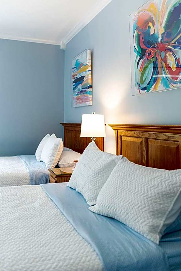 Guest rooms range from 398-square-foot Deluxe King and Deluxe Queen to 495-square-foot Superior Queen, with additional options including Deluxe Suite, Deluxe 2 Queen, Deluxe 2 Twin, and Deluxe Queen Room. All spaces are non-smoking and designed with privacy in mind, with layouts that emphasize a quiet ambiance and garden views.